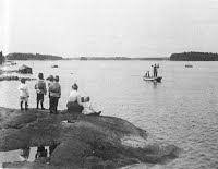 Valborg med barn, klippan vid ”Läkovillan” i Kallvik, Nordsjö, 1903, fotografi av bror Harald